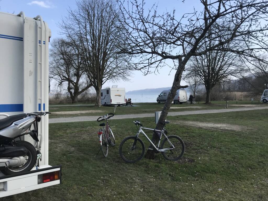 Wir fahren auf den Campingplatz Schacherhorn in Ludwigshafen direkt am See. Viel ist zu dieser Jahreszeit noch nicht los auf dem Platz, daher gibt es eine Radtour nach Bodman und danach eine Einkehr im Landgasthaus Sonne in Espasingen.