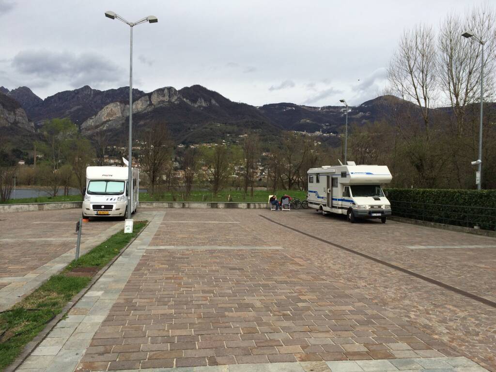 Die Etappe führt bei Chiasso über die italienische Grenze, an Como vorbei bis an den Lago di Garlate Dort auf den fast leeren Stellplatz in Olginate. Vorher versorgen wir uns im Supermarkt mit lokalen Leckereien und kochen das erste mal im Womo.