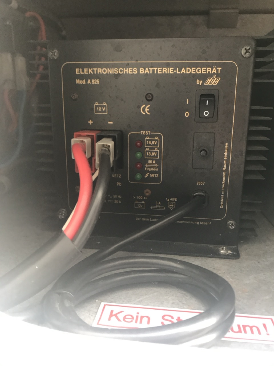 Um eine nochmalige Schädigung der Aufbaubatterie zu vermeiden wurde das original verbaute Ladegerät vom Typ cbe A925 durch ein modernes Victron BlueSmart IP22 ersetzt.